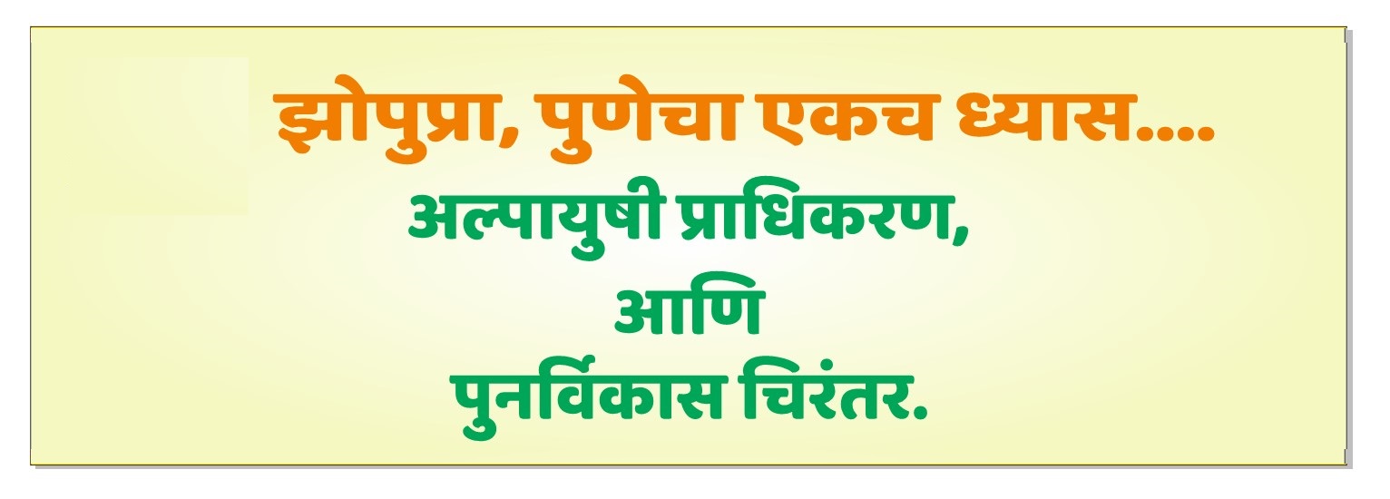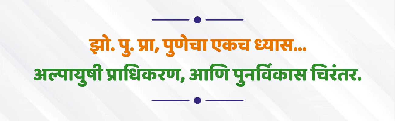 पुणे शहर हे महाराष्ट्राची सांस्कृतिक राजधानी म्हणून आणि पिंपरी-चिंचवड हे शहर उद्योग नगरी म्हणून ओळखले जाते. पुणे आणि पिंपरी-चिंचवड या शहरामध्ये उद्योग, व्यवसाय, शिक्षण तसेच रोजगार यासाठी देशाच्या अन्य भागातून मोठ्या प्रमाणात लोक स्थलांतरित होतात. शहरात नव्याने येणाऱ्या लोकांना त्यांच्या आर्थिक परिस्थितीचा विचार करता निवाऱ्याची सोय उपलब्ध होत नसल्याने त्यांनी प्रदीर्घ काळापासून झोपडपट्टीमध्ये वास्तव्य केले आहे. पुणे शहरामध्ये 486 झोपडपट्ट्या असून त्यामध्ये जवळपास 1,65,000 एवढ्या कुटुंबाचे वास्तव्य असून शहराच्या एकूण लोकसंख्येच्या सुमारे 28 टक्के लोक झोपडपट्टीत राहत आहेत. पिंपरी-चिंचवड महानगरपालिका क्षेत्रात 71 झोपडपट्ट्या असून त्यामध्ये सुमारे 35,261 कुटुंबाचे वास्तव्य आहे. शहराच्या उकूण लोकसंख्येच्या सुमारे 14.78 टक्के लोक झोपडपट्टीत राहत आहेत.झोपडपट्टीतील अस्वच्छ व अनारोग्य असलेल्या परिस्थितीत तेथील लोक खडतर अवस्थेत जीवन कंठीत असतात. झोपडपट्टीत राहणाऱ्या आर्थिकदृष्ट्या दुर्बल असलेल्या पात्र कुटुंबाना त्यांच्या स्वप्नातील पक्के घर राज्य शासनाने प्राधिकरणाच्या मध्यामातुने विनामुल्य देऊ केले आहे. शासनाने झोपडपट्टीने व्यापलेल्या जमिनीचा साधनसंपत्ती म्हणून सुयोग्य वापर करून प्रोत्साहनात्मक चटईक्षेत्र निर्देशांक अनुज्ञेय करून झोपडपट्टी पुनर्वसन योजना अंमलात आणली आहे. झोपडपट्टी पुनर्वसन योजने अंतर्गत पात्र झोपडपट्टीवासियांना आवश्यक सोयी सुविधायुक्त घर विनामुल्य मालकी हक्काने उपलब्ध करून झोपडपट्टीवासी यांचे राहणीमान व जीवनमान उंचावण्याचे राज्य शासनाचे ध्येय आहे. त्यानुसार योजनेचा लाभ घेवून पुणे व पिंपरी-चिंचवड ही शहरे झोपडपट्टी मुक्त करणे हा प्राधिकरणाचा ध्यास आहे “अल्पायुषी प्राधिकरण आणि पुनर्विकास चिरंतर” झोपडपट्टी पुनर्वसन योजनेचे ध्येय आहे.